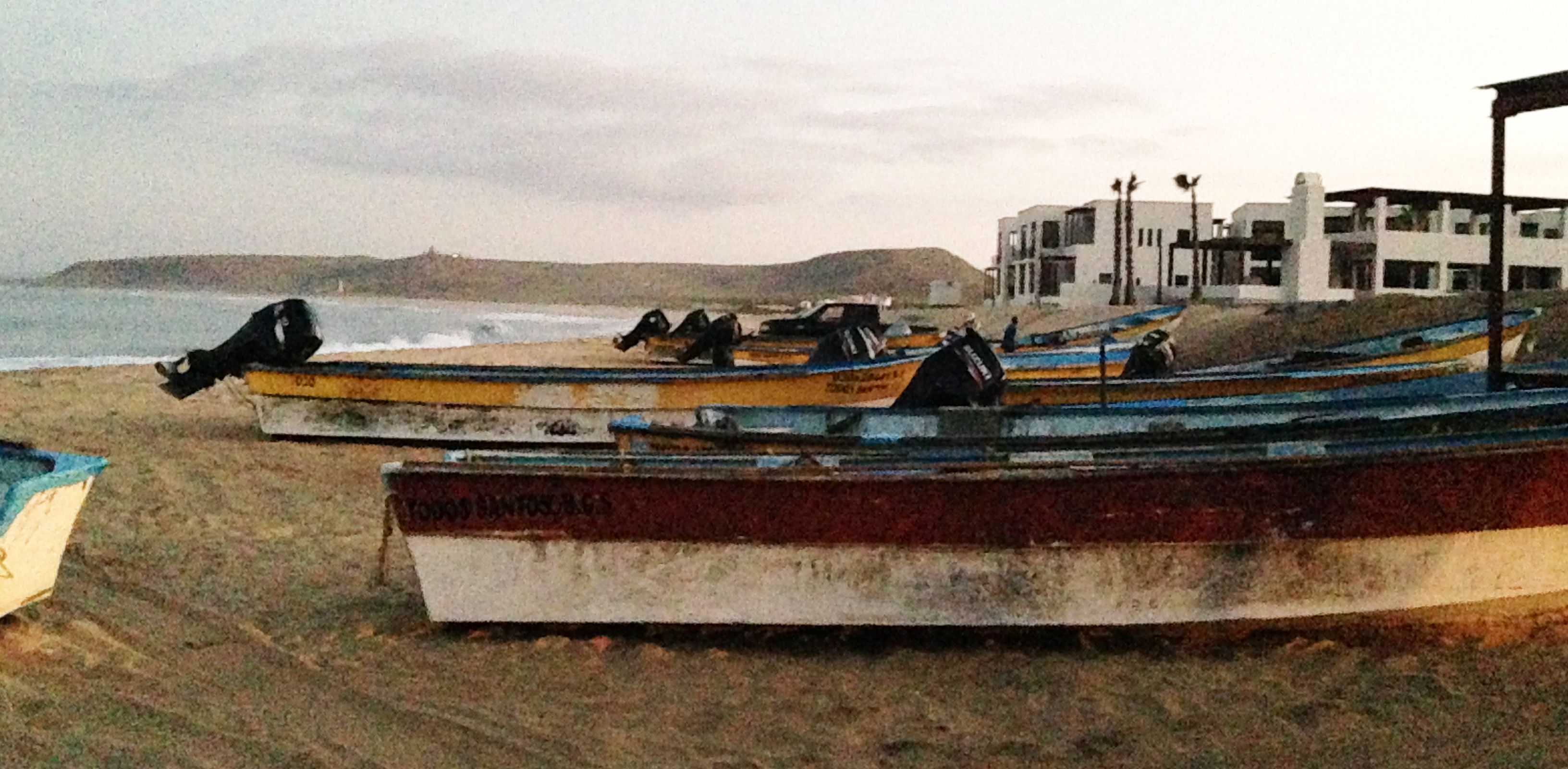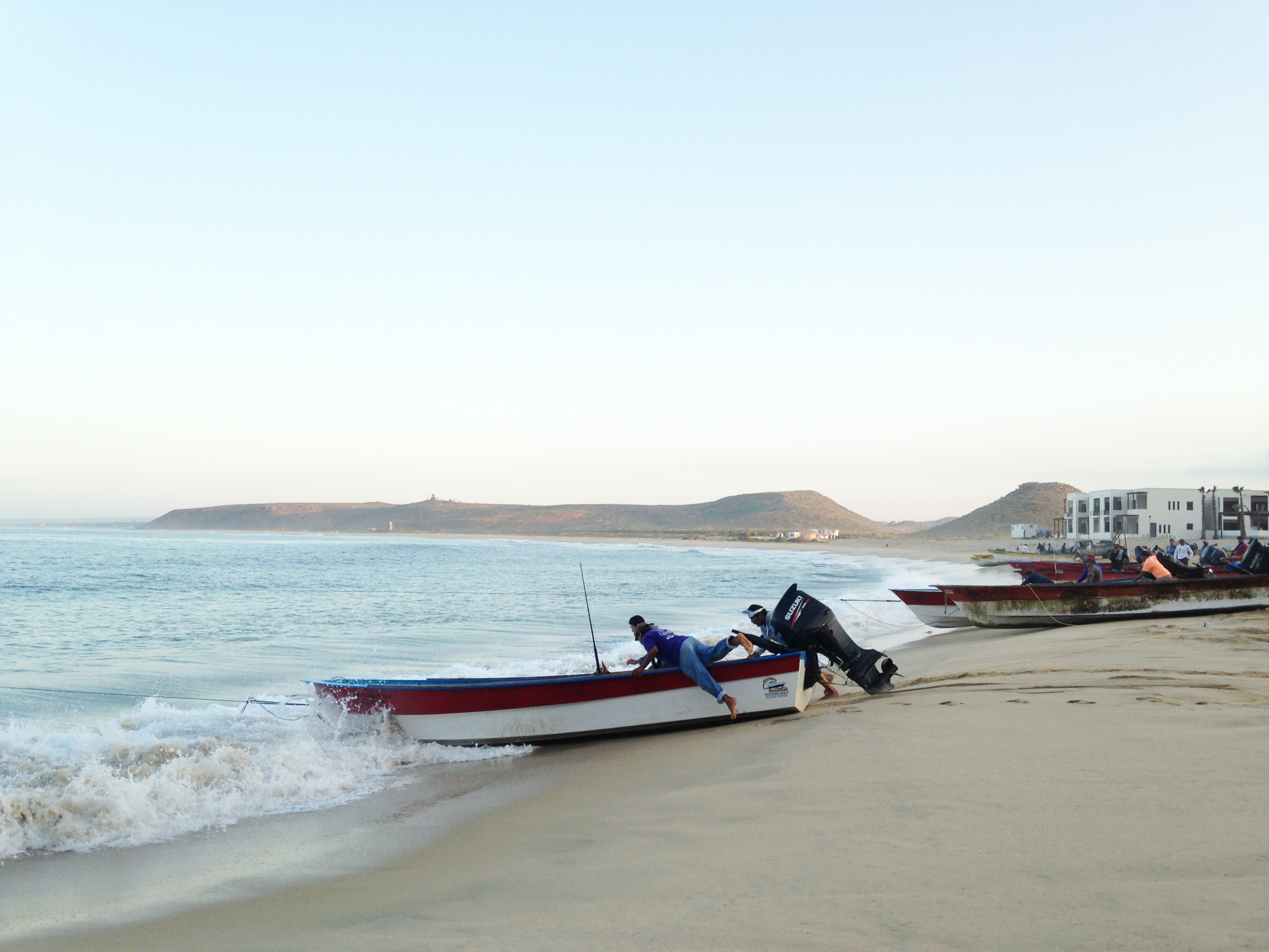 Arriving in La Paz, the presence of having the Gulf of California aka ‘the largest aquarium in the world’ just off shore is manifested throughout the city by amazing murals, statues, and tortoise shaped waste bins. After meeting up with the rest of the field trip team, Maja Schlüter, Laura Elsler, Xavier Basurto, Bjorn Vollan, Kara Pellowe and Heather Leslie, we continued to the Pacific side of of BCS to visit two fishing cooperatives. The boats belonging to each cooperative where either yellow or red, and grouped in two sections of the beach. The story is that one of the cooperatives had lost their permission to keep their boats there because of the new hotel (fig. 2), but somehow they are back. Hopefully an agreement was made!