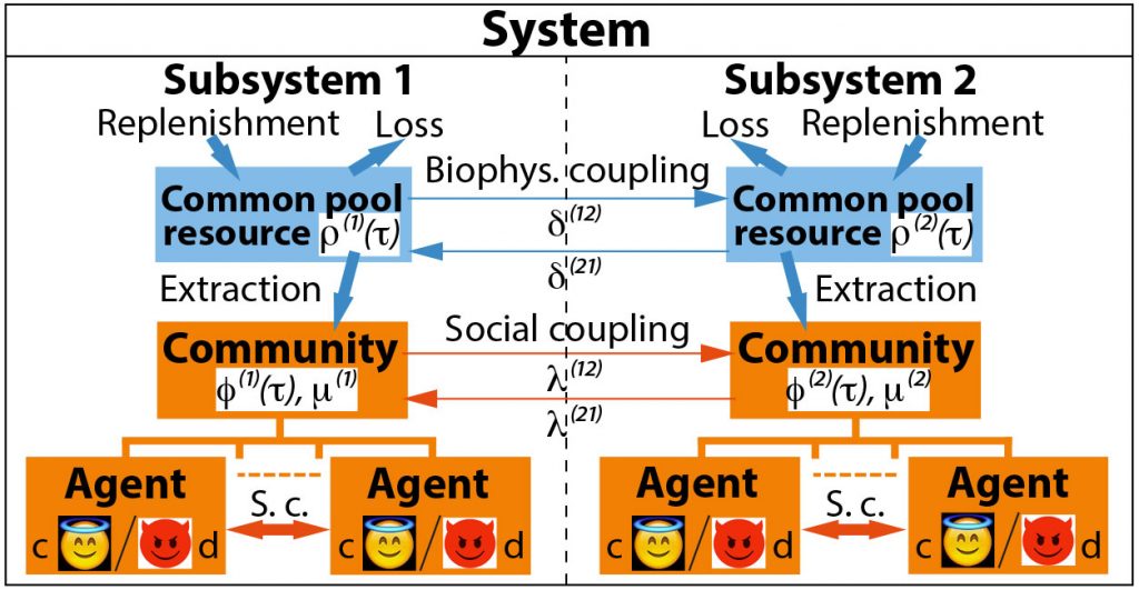 Using a combination of numerical and analytical methods, our modelling framework can also accommodate other interaction mechanisms between subsystems, such as trade and migration, which will be added in future. It is also a basis for future development using multiscale analytical methods from many-body dynamical systems theory and statistical mechanics, which have successfully elucidated dynamics in many complex systems. We envisage that an effective theory of cross-scale interactions in SESs will provide an important complement to statistical and qualitative analyses from multiscale empirical studies. Intuition from this theory may guide empirical researchers in quantifying CSIs and the mechanisms underlying them, revealing new leverage points for effective governance of real systems.